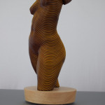 De transparantie van het acryl laat licht de vitaliteit en de dynamiek van de pose weer- spiegelen. Op eenzelfde manier produceert de tweevoudige toon van de stukken hout, hoogtepunten die verschijnen of variëren afhankelijk van het gezichtspunt. Het uiterlijk en de textuur van de topografie van de beelden veranderen. De stijfheid en de sterkte van deze materialen zijn duidelijk in tegensteling tot de zachtheid en soepelheid van het lichaam, maar toch, in de handen van de beeldhouwer worden de rondingen van het vlees en de plooien van de huid subtiel neer gezet in een verheerlijking van de schoonheid en energie en sensualiteit van deze vrouwen