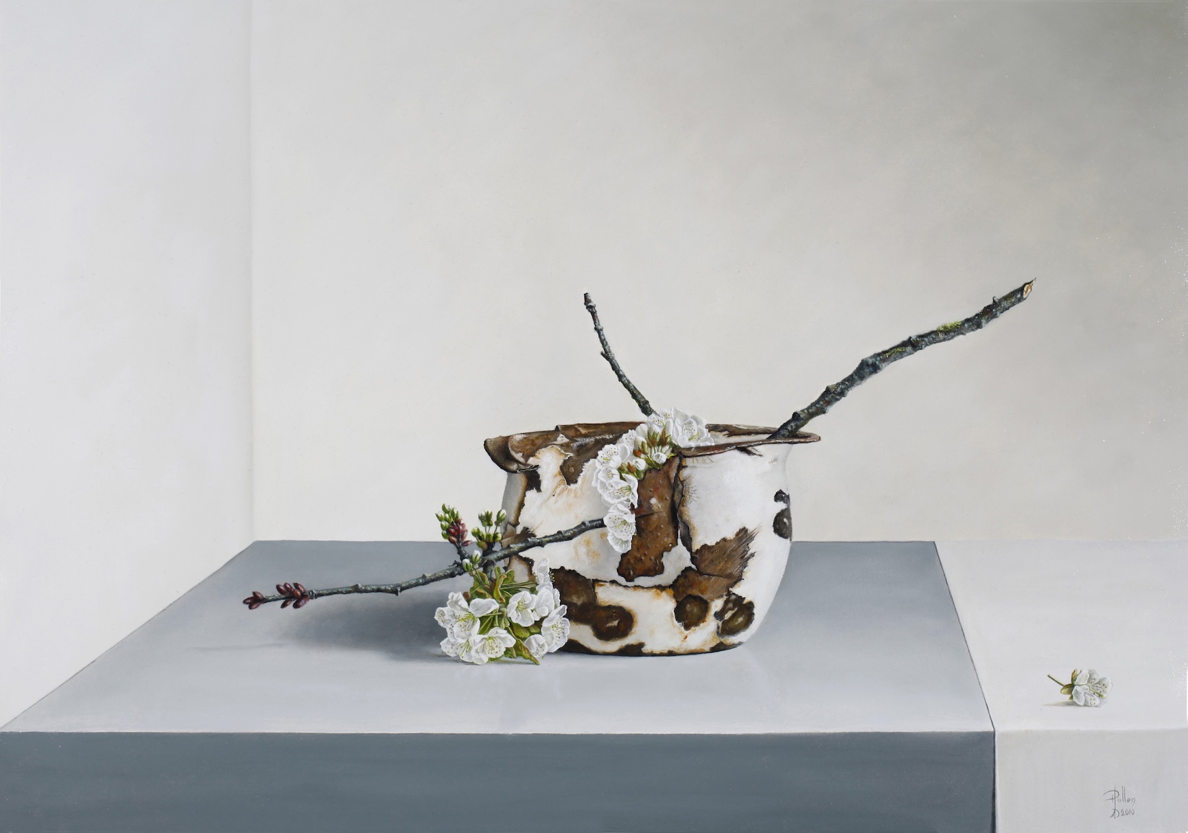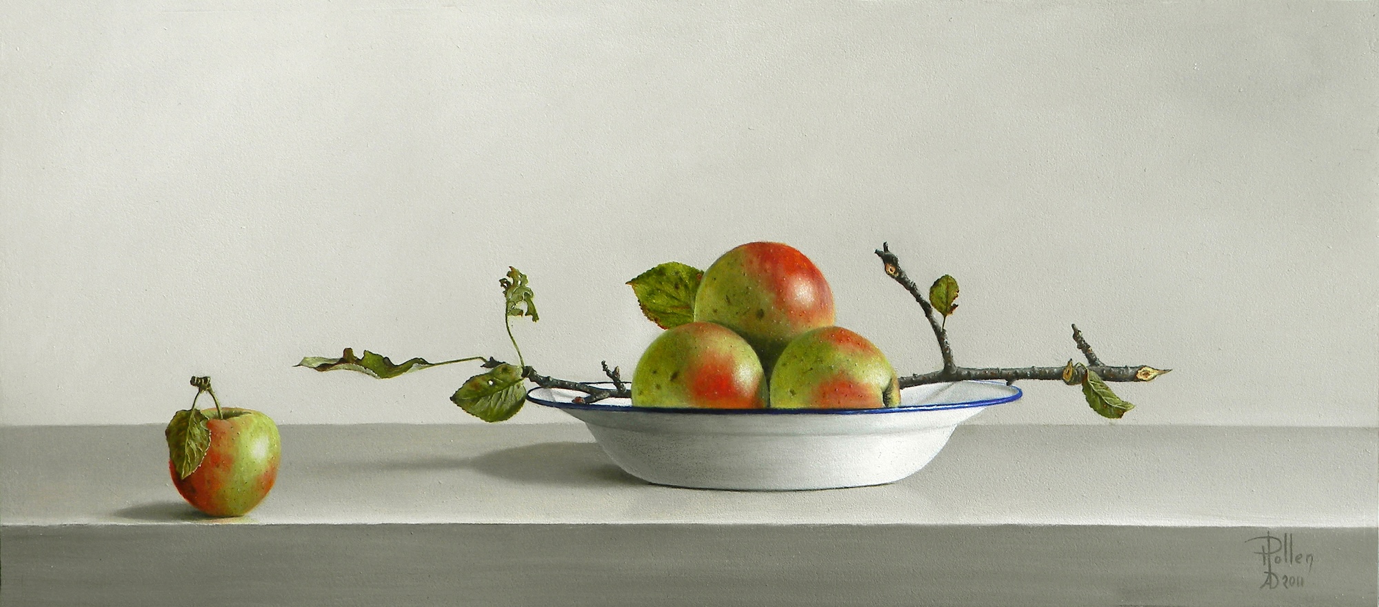 Hub schilderde stillevens, die rust uit straalde, waarbij het leven voor altijd stilstaat. Tijdloze kunst in een rusteloos tijdsgewricht. Van groenteboer tot fijnschilder. Een grote stap voor de mens, doch niet voor Hub Pollen. Al schilderend kon hij de liefde voor groente en fruit voor eeuwig vastleggen. Hij maakte ook schilderijen van composities van antieke en hedendaagse voorwerpen en fruit of groente die hij dan op doek vastlegde. Weg met overbodige ballast en vandaar dat ook slechts enkele stukken groenten of fruit voldoende waren voor een nieuw meesterwerk.