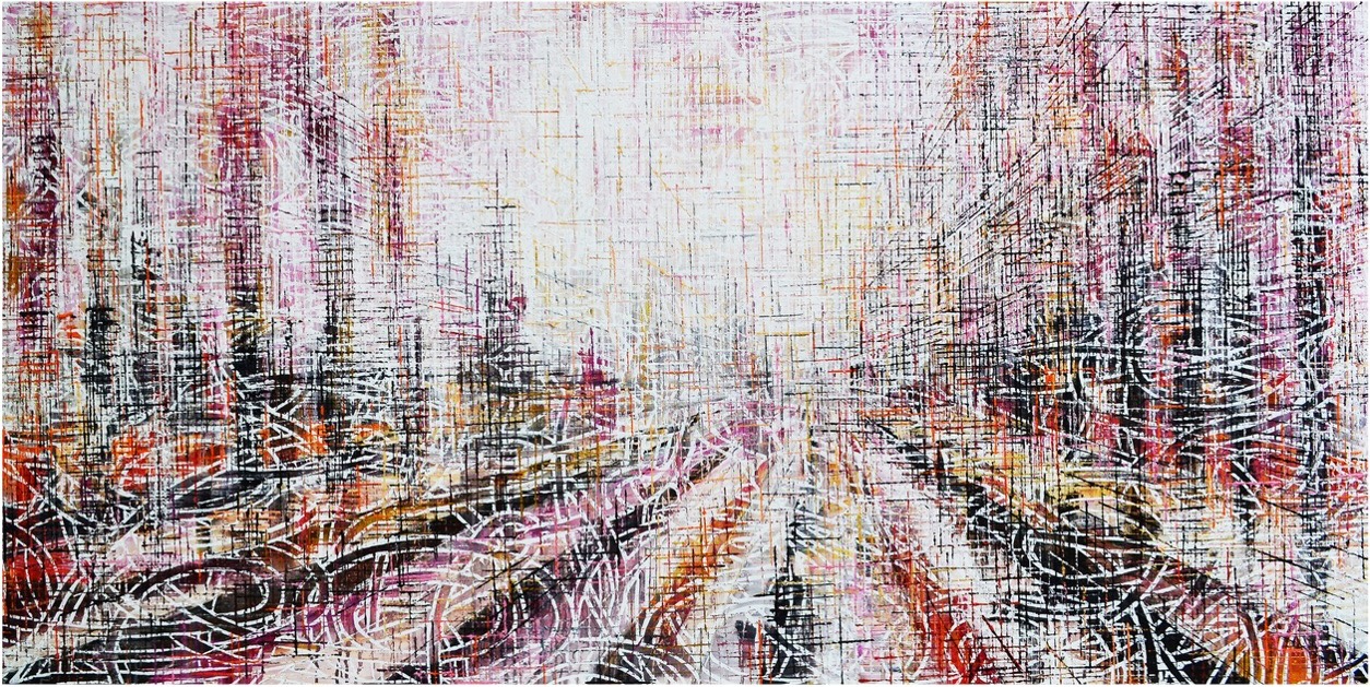 Het is interessant hoe hij de ruimte beïnvloedt en binnen deze ruimte een spanningsveld creëert. Zijn schilderijen zijn gelaagd en je ervaart de rust en het geduld waarmee hij zijn werk maakt. Hij speelt met ruimte en licht, suggereert beweging en diepte. Hij laat zien dat het innemen van ruimte een keuze is. Je wordt in zijn werk gezogen en hij daagt de kijker uit om zich open te stellen voor zijn wereld.