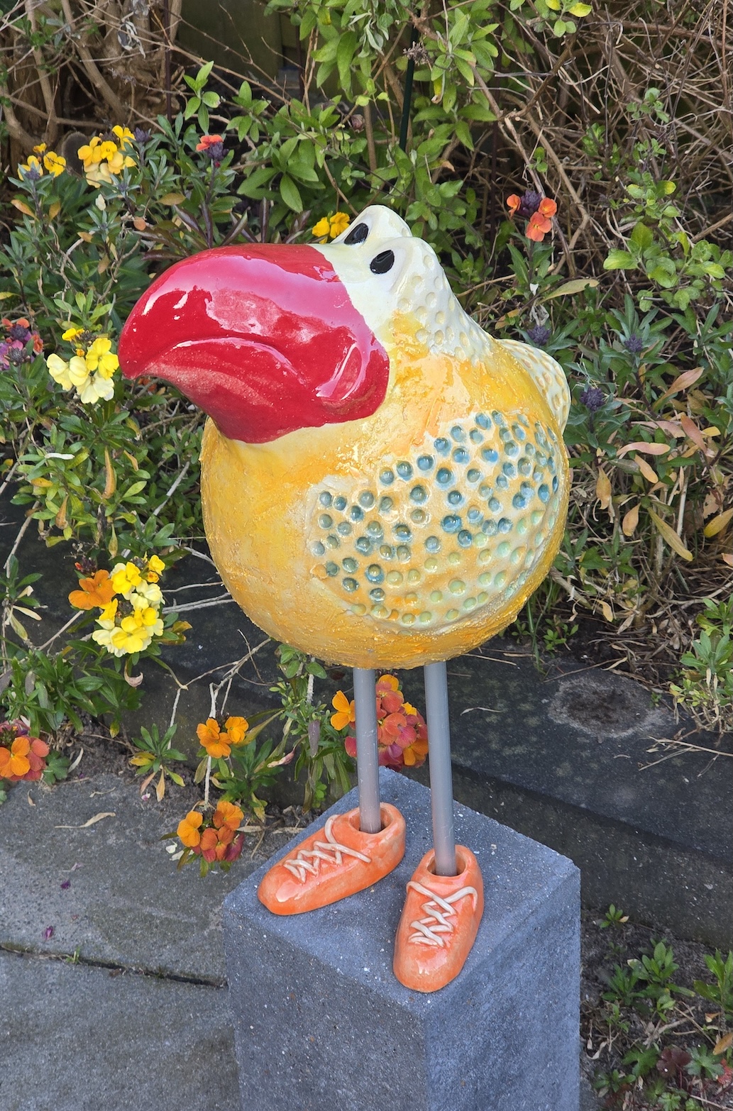 De beelden worden op hoge temperatuur (1245 graden Celsius) gebakken en zijn daardoor ook geschikt voor buiten, bijvoorbeeld in de tuin.